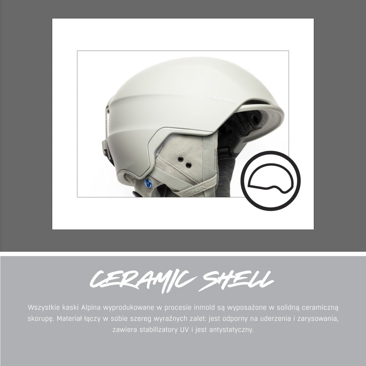 Projekt ALPINA GRAND Junior jest młodzieżową wersją dorosłego GRANDA. Dzięki nim matki, ojcowie, córki i synowie mogą wyruszyć na stoki w takim samym kasku, ale o indywidualnym designie. I wszyscy docenią komfort GRANDA. Wysokiej jakości wnętrze, które można zdjąć i wyprać, odpinane uszy, aktywny system wentylacji oraz ocieplający ochraniacz karku zapewniają maksymalny komfort na nartach. W przypadku uderzenia Ceramic Shell w połączeniu z Hi-EPS zapewnia mega skuteczną ochronę. Produkcja metodą inmold sprawia, że GRAND jest bezpieczny i wytrzymały, a jednocześnie bardzo lekki.