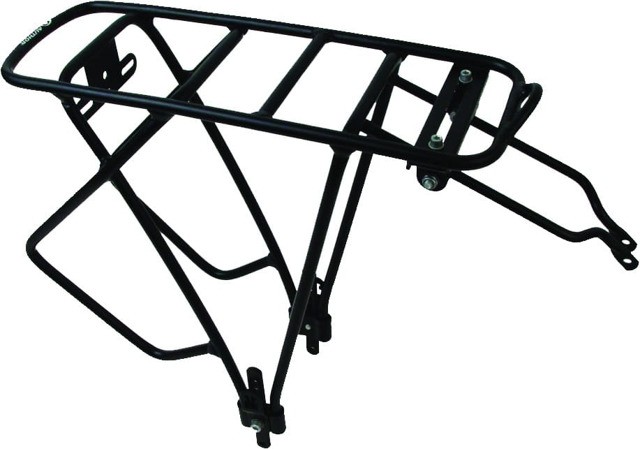 Bagażnik tylny wykonany ze stopu aluminium 6061-T6. Uchwyty o regulowanej wysokości umożliwiają zastosowanie tego bagażnika do rowerów z kołami o rozmiarze 24"-28". Maksymalny udźwig: do 25 kg. Waga: 740 g. Kolor: czarny. Zestaw nie zawiera śrub montażowych do ramy.