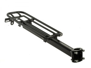 Bardzo lekki bagażnik mocowany na wsporniku siodła za pomocą 4 śrub. Wykonany ze stopu aluminium 6061-T6. System łatwego i szybkiego montażu i demontażu umożliwiający zamocowanie na wsporniku siodła o średnicy od 26,8 do 31,6 mm. Wymiary: długość 310 mm, szerokość 115 mm. Maksymalny udźwig: do 10 kg. Waga bagażnika: 555 g. Kolor: czarny.