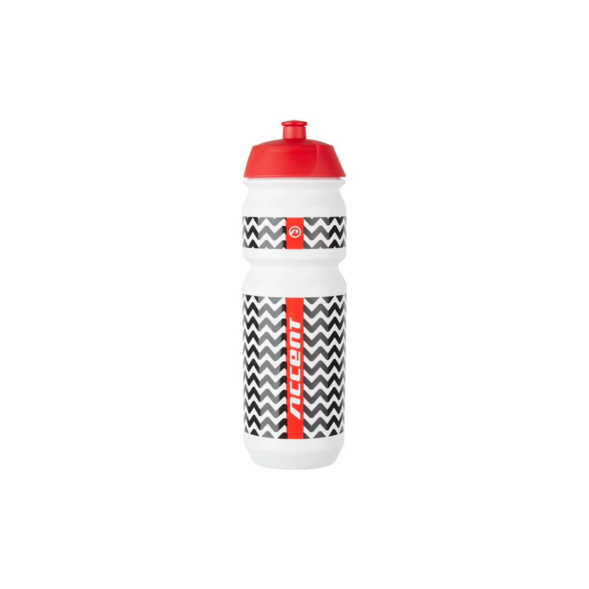 Bidony o pojemności 750 ml dopasowane kolorystycznie do odzieży i akcesoriów z serii Accent ZigZac. Do wyboru dwa rodzaje nakrętek - standardowa oraz przekręcana Shanti. Ustnik standardowy wyciąga się w górę. W przypadku Shanti ustnik wyposażony został w specjalna membranę zapobiegającą wyciekaniu płynów i dozowanie odbywa się poprzez ściśniecie bidonu. Nakrętki posiada odpowiednie wycięcia ułatwiające zakręcanie i odkręcanie. Bidon łatwo napełnić, ale również wyczyścić dzięki odpowiedniej średnicy.
