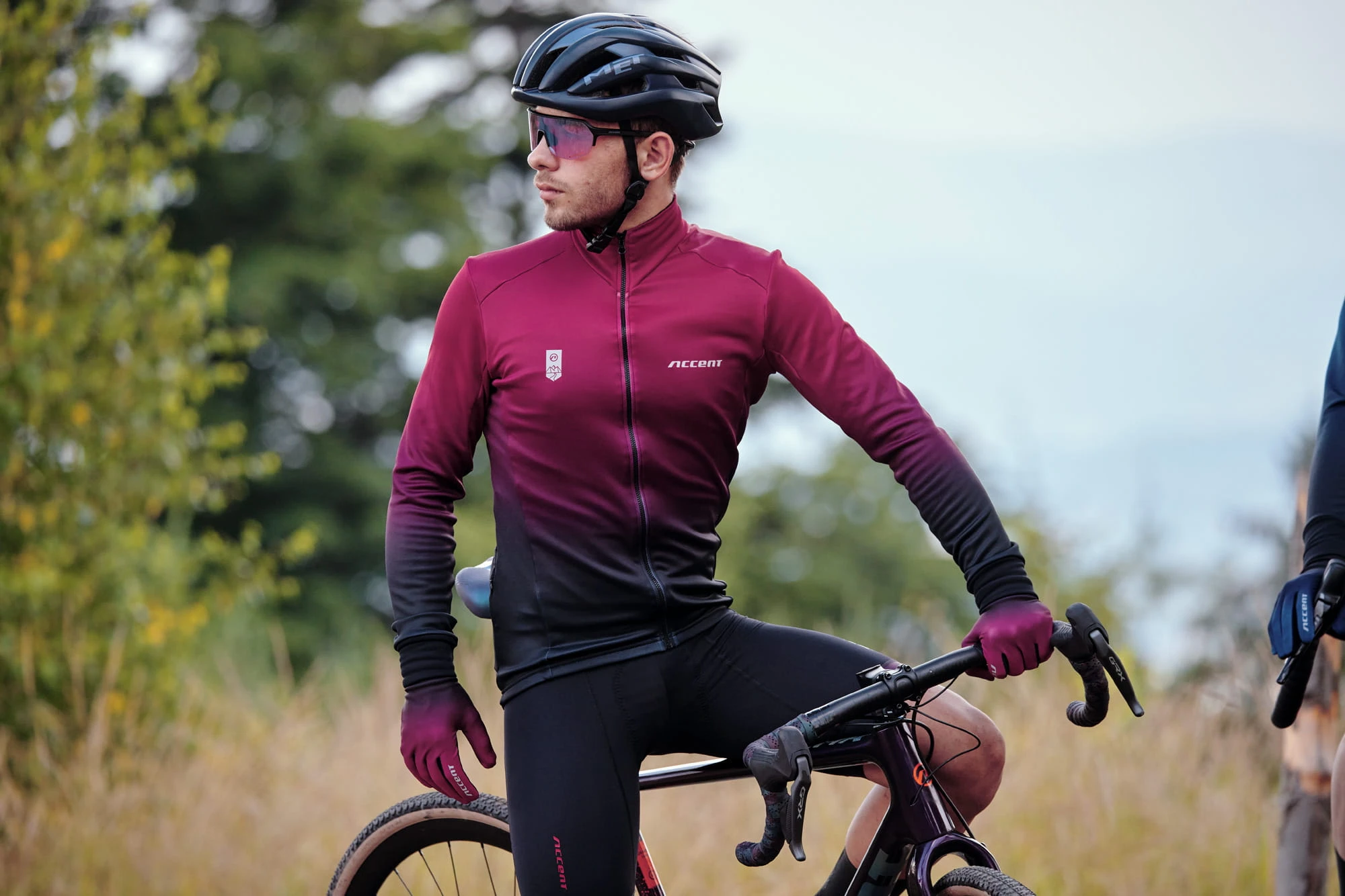 Ciepła bluza kolarska z linii Accent Pure wykonana z miękkiej tkaniny z ocieploną wewnętrzną warstwą. Świetnie odprowadza pot i jest odporna na wilgoć. Posiada trzy tylne kieszenie. Taśma zapobiegająca przesuwaniu się bluzy, w przedniej części szersza dla lepszego dopasowania ze spodniami.