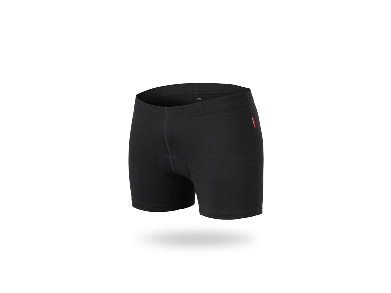 Bokserki damskie z wkładką. Wykonane z bakteriostatycznego włókna, które niezależnie od stopnia aktywności bakterii utrzymuje ich naturalny poziom na skórze. Dzięki obecności środka bakteriostatycznego w strukturze polimerowej włókna nie następuje migracja bakterii z materiału na skórę, chroniąc przed alergiami i nieprzyjemnymi zapachami. Doskonale odprowadzają pot. Bardzo szybko schną. Są bardzo przyjemne w kontakcie ze skórą. Damska wkładka wykonana z pianki o wysokiej gęstości, zapewnia komfort i swobodę ruchów. Bezszwowa budowa zapobiega otarciom. Dzięki specjalnej konstrukcji bokserki zapewniają odpowiednią elastyczność i idealne, anatomiczne dopasowanie do ciała.