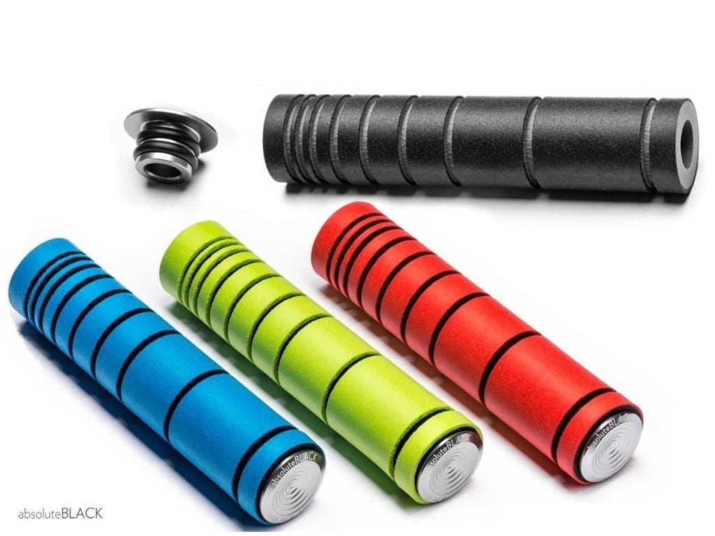 Chwyty Absoluteblack wykonane z silikonu o podwójnej gęstości, ze specjalną rowkowaną strukturą, która znacznie poprawia chwyt i komfort w trudnych warunkach.
