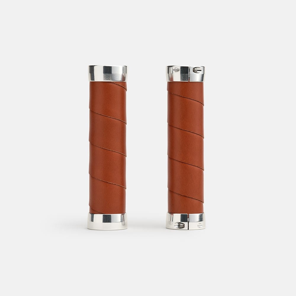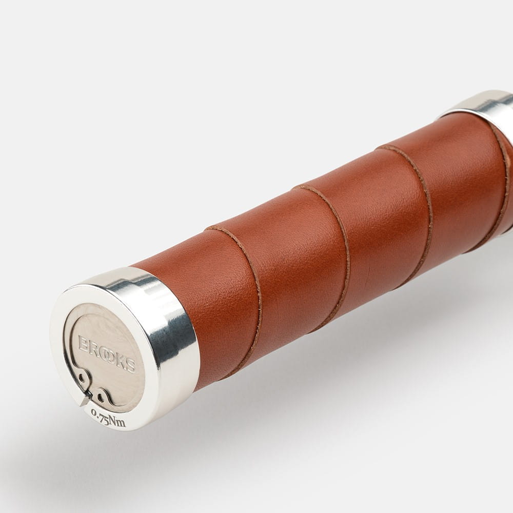 Chwyty skórzane Brooks Slender Leather Grips wykonane są z owijki ze skóry garbowanej roślinnie, naturalnego i ponadczasowego materiału zapewniającego długą żywotność i wspaniały wygląd; idealne do rowerów z prostą kierownicą. Konstrukcja obejmuje aluminiowy korpus, wokół którego owinięta jest taśma owijki w tradycyjny sposób. Skóra jest następnie utrzymywana na miejscu za pomocą aluminiowych stalowych zacisków, które można usunąć w przypadku konieczności wymiany taśmy.