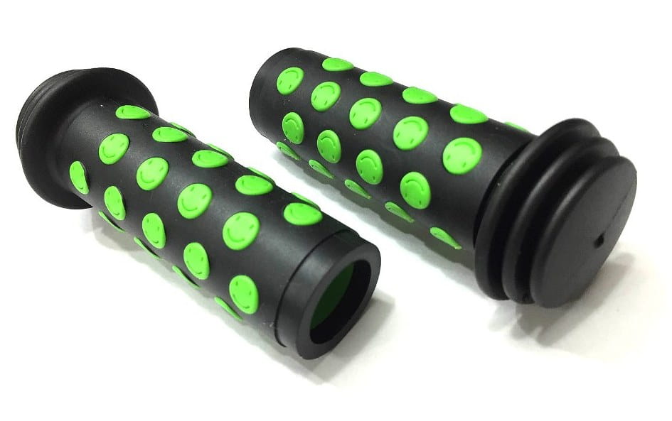 Chwyty kierownicy dziecięce ze specjalnym kołnierzem zabezpieczającym. Wykonane z gumy. Długość: 102 mm.