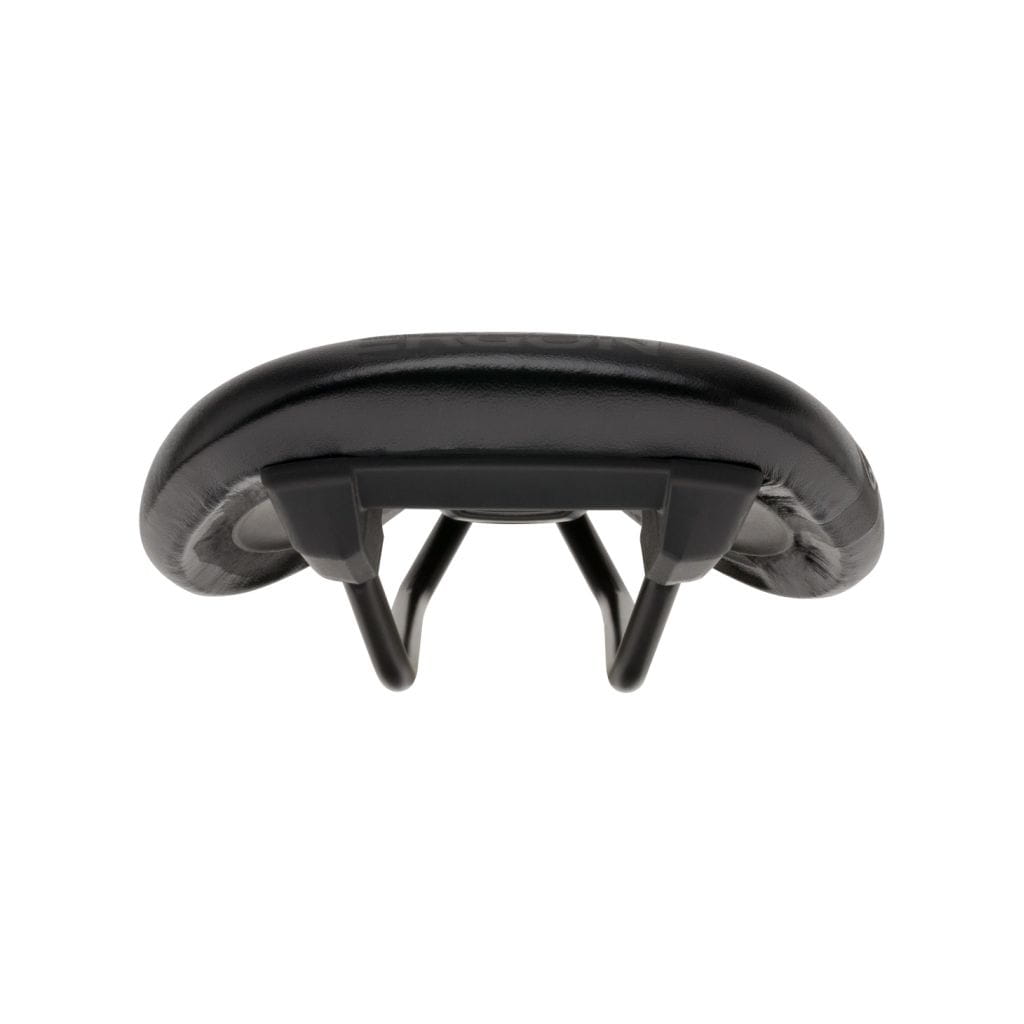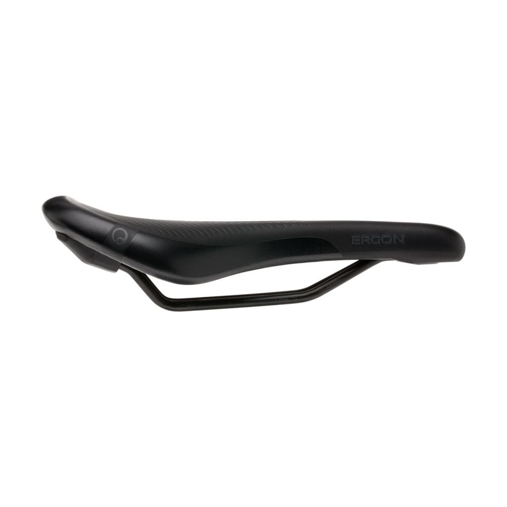 Zespół projektowy Ergon szczegółowo przeanalizował wymagania rowerzystów E-Mountain. Dłuższe okresy siedzenia, bardziej strome podjazdy. Po intensywnych badaniach znaleziono optymalny kształt siodła.Tylna część lepiej wspiera jadącego na stromych podjazdach w pozycji siedzącej. Kontury siodełka ułatwia zmianę pozycji do zjazdu. Kształt litery V zapewnia również swobodę ruchu po szerokich zboczach, a wyściełany nosek jest ważny przy szczególnie stromych podjazdach.