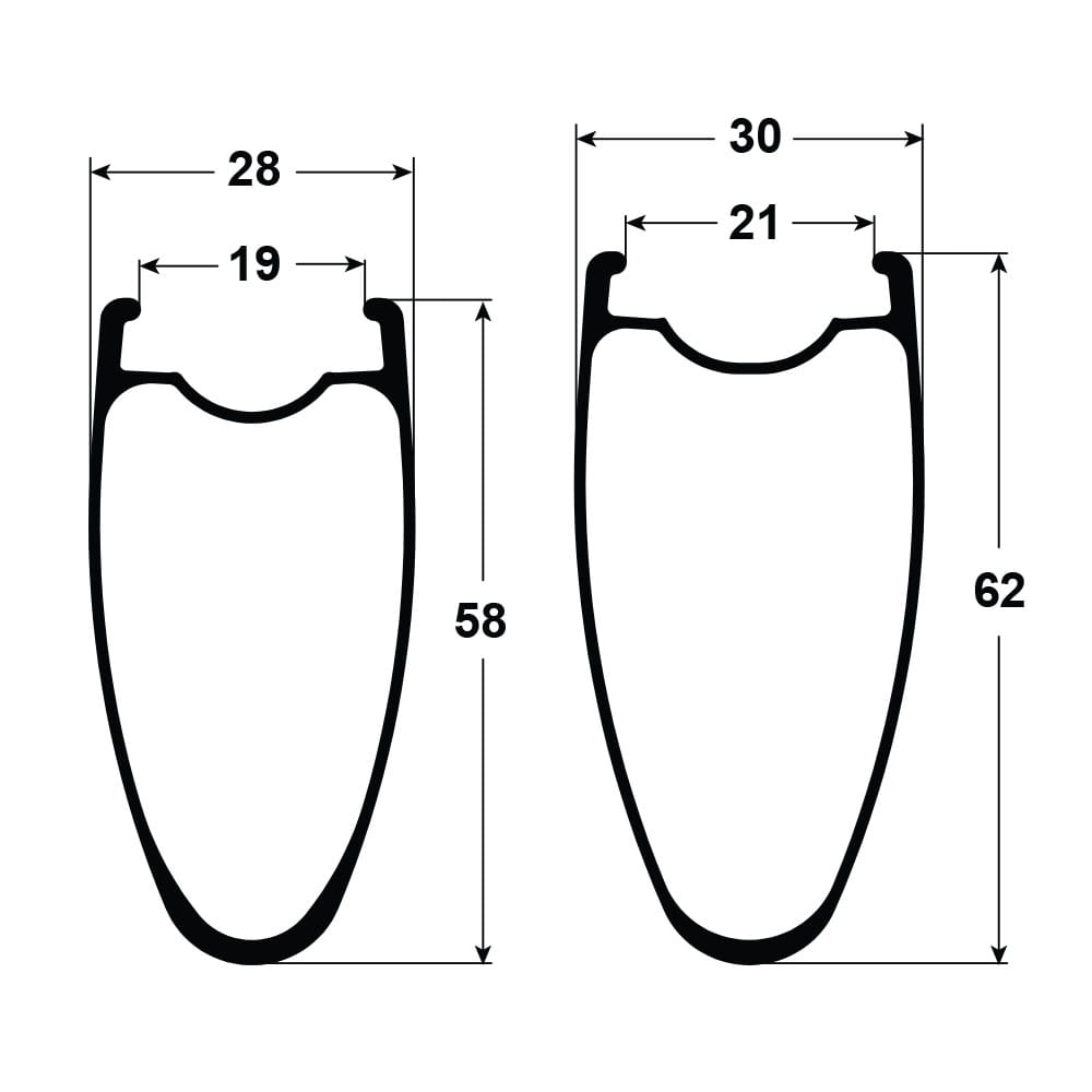 Obręcz tylnia (rozmiar/wysokość/ szerokość): 700C/62mm/21-30mm, pod opone, tubeless ready