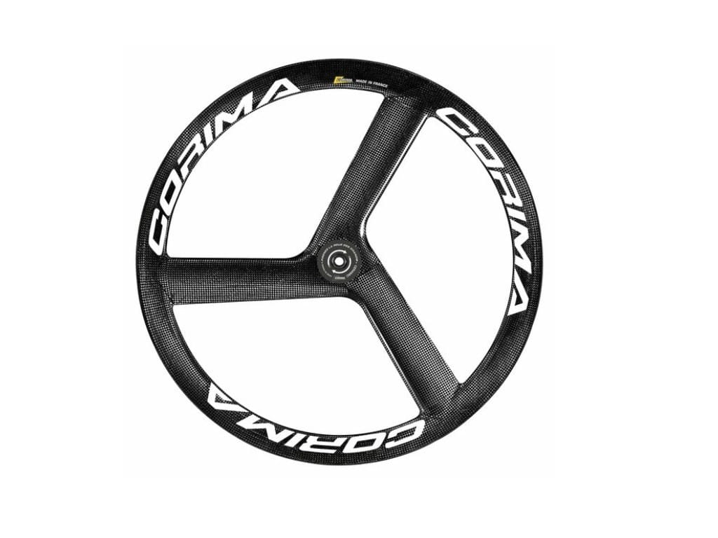 Koło przód Corima 3 Spoke S DX szytka, Center Lock, białe naklejki