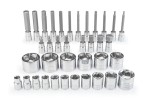 Zawiera: końcówki nasadowe 8, 9, 10, 11, 12, 13, 14, 15, 17, 19mm oraz 1", imbusy 3, 4, 5, 6, 8, 10, 14 oraz 16mm, imbusy 5, 6, 8, 10, 11, 12, oraz 15mm z długim trzpieniem oraz końcówki Torx T20, T25, T30, T40 oraz T45 z długim trzpieniem.