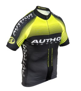 Koszulka kolarska Author Racing Team. Wykonana z oddychającej i odprowadzającej pot tkaniny poliestrowej w przedniej i tylnej części. Rękawy oraz ramiona wykonane z rozciągliwego materiału Stripes dla lepszego dopasowania i aerodynamiki. Elastyczna taśma na dole z antypoślizgowym paskiem. Trzy kieszenie z tyłu ściągane gumką. Stójka. Rozpinana na całej długości. Elementy odblaskowe.