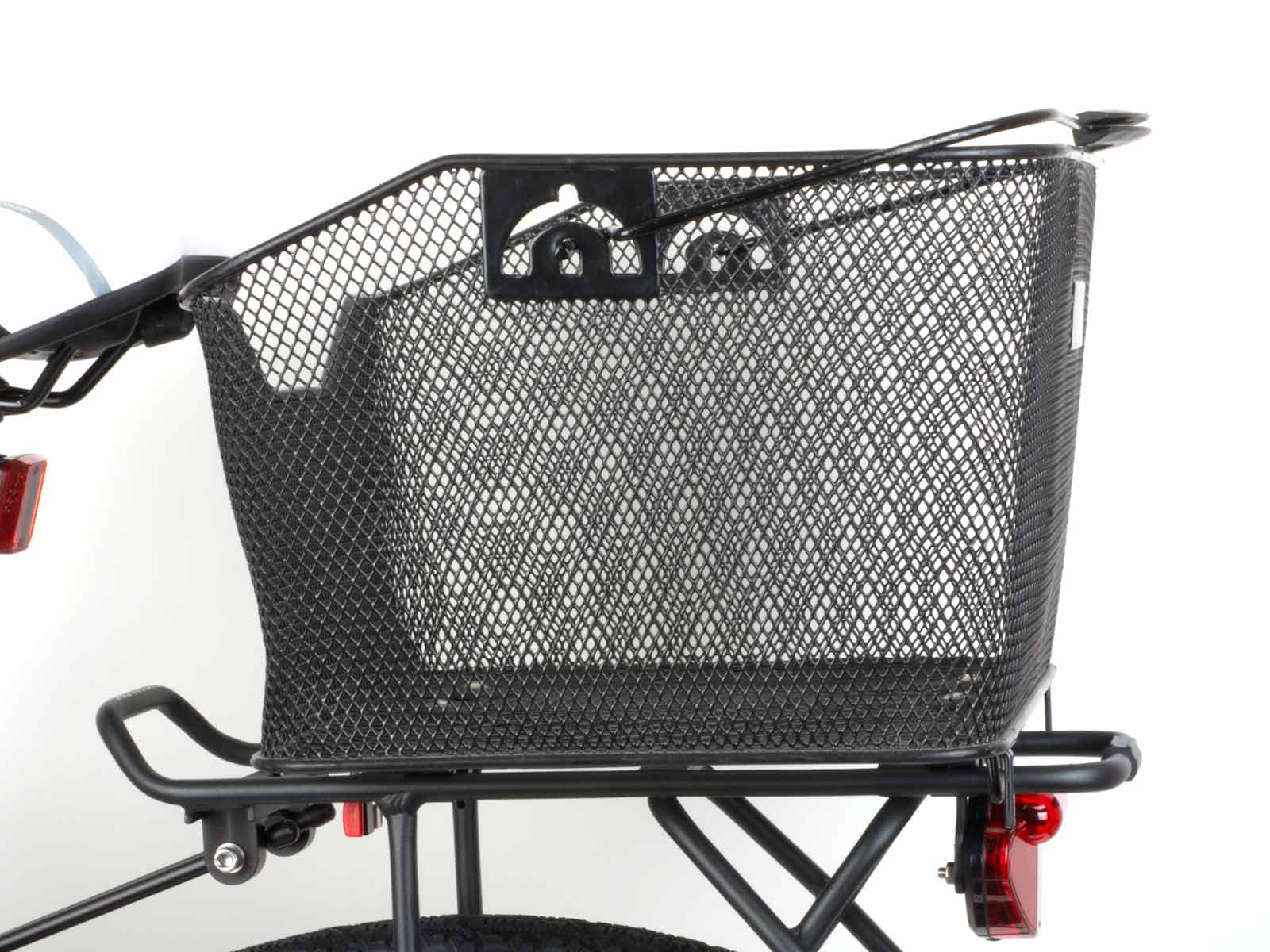 Koszyk na bagażnik wyposażony w system szybkiego montażu i demontażu CARRY MORE. Wykonany ze stali. Długość: 31 cm, szerokość: 41 cm, wysokość: 17 cm.