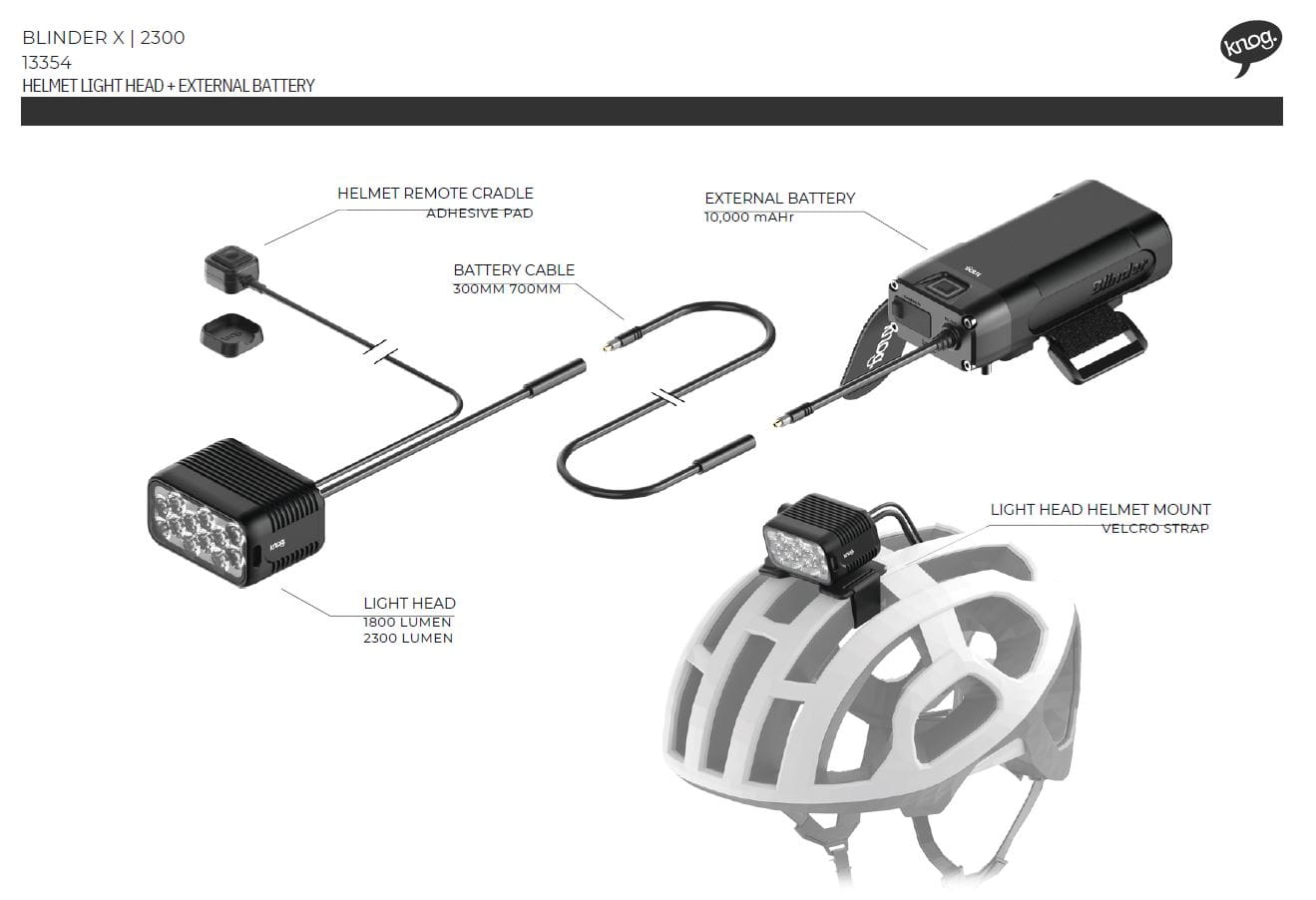 Lampa Knog Blinder X 2300 Helmet Kit + bateria 10,000 mAh przód