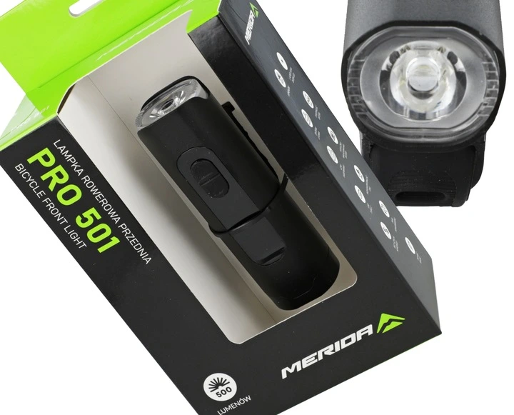 Merida Pro 501 to mocna i wielofunkcyjna przednia lampka rowerowa, idealna zarówno na nocne trasy, jak i codzienne dojazdy. Dzięki dużej mocy, nowoczesnym funkcjom i trwałej obudowie zapewnia bezpieczeństwo i wygodę podczas jazdy.