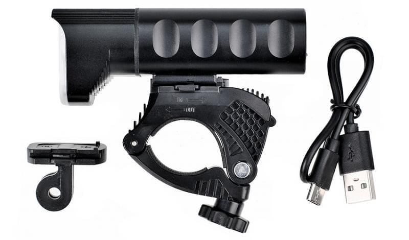Przednia lampka KASTOR-X została wyposażona w 4 super jasne diody CREE XP-G3 o maksymalnej mocy świecenia aż 1800 lm. Nie wymaga użycia baterii - zintegrowany akumulator jest ładowany przy pomocy dołączonego do zestawu kabla USB.Posiada funkcję POWER BANK - gniazdo USB-C służy również do ładowania urządzeń zewnętrznych np. telefonu (5V, 0,5A). Zestaw zawiera uchwyt szybkiego montażu na kierownicę. Lampka ma wodoszczelną konstrukcję (IP65).