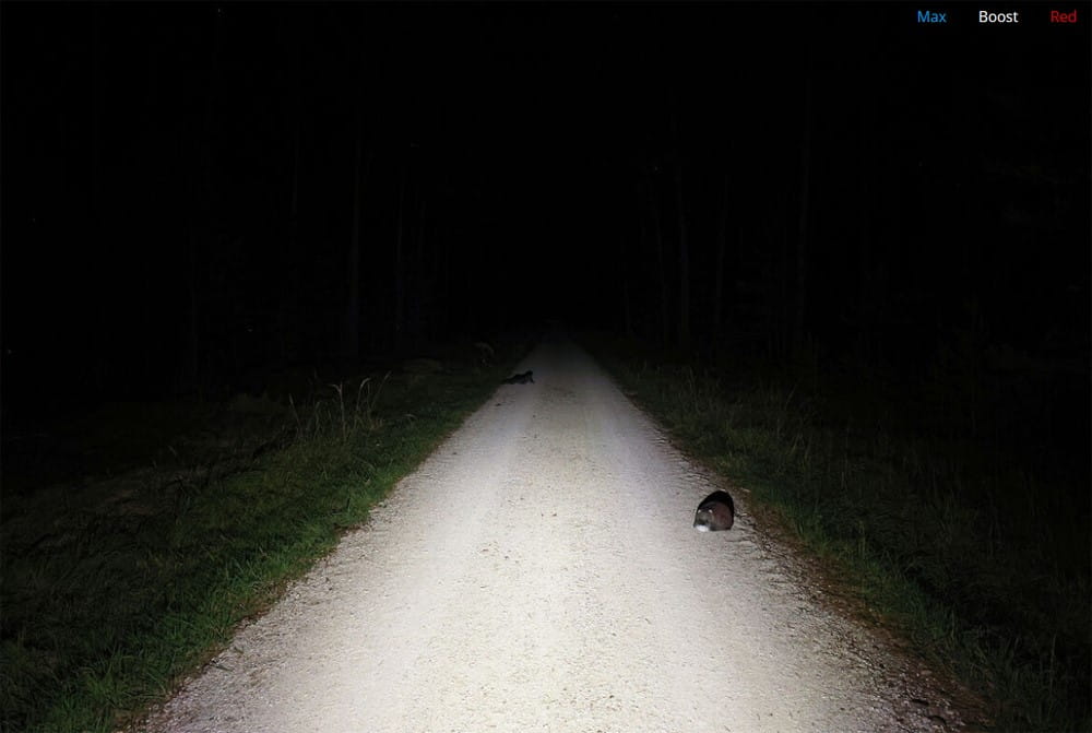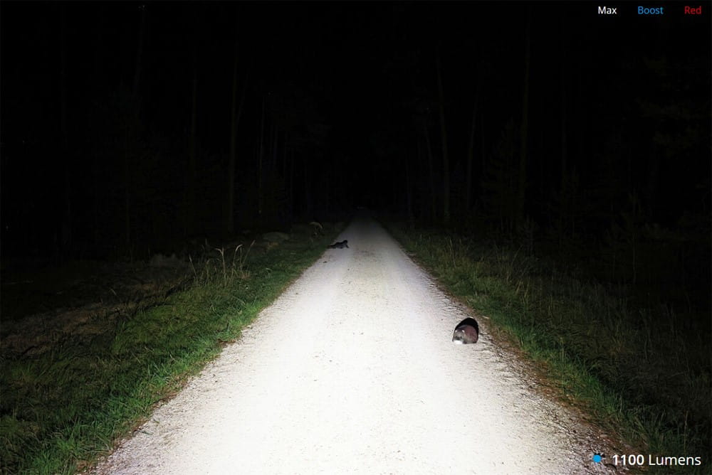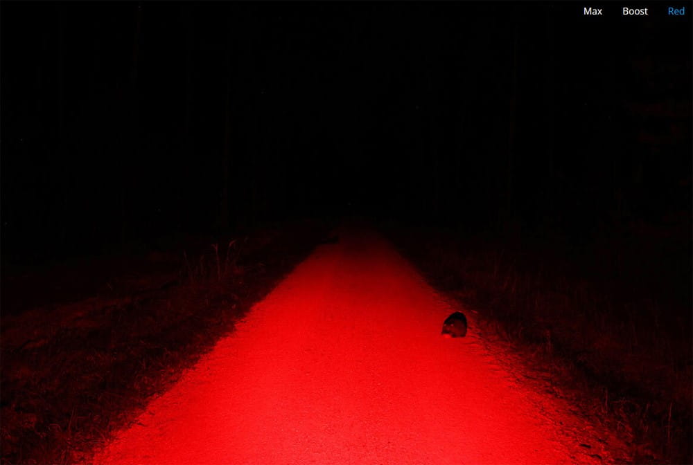Dzięki Penta masz do dyspozycji wiele funkcji oświetlenia: dwa źródła światła czerwonego o różnych właściwościach wiązki, które mogą świecić pojedynczo lub razem; światło rozproszone, które można stopniowo przyciemniać i oczywiście główny reflektor, który można rozjaśnić do mocy 1100 lumenów przez krótki czas, klikając dwukrotnie. Niezwykły jest również czas pracy małej Penty, na najniższym poziomie światło rozproszone świeci do 120h czyli ponad 5 dni z rzędu.