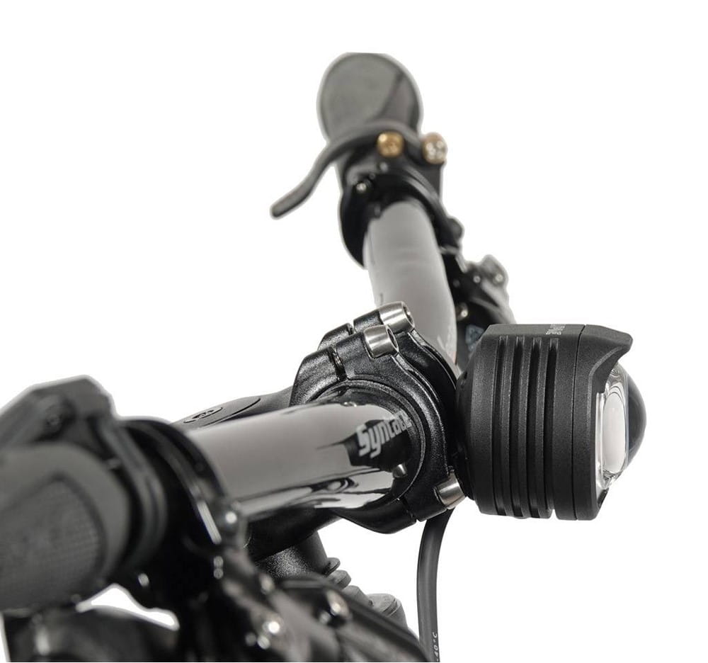 Ze sterowanymi czujnikami światłami do jazdy dziennej i nieoślepiającymi światłami mijania o mocy 100 lumenów poruszasz się bezpiecznie w ruchu ulicznym o każdej porze dnia. Naciskając na przycisk pilota Bluetooth uruchamiasz światła drogowe o mocy 1300 lumenów i sprawisz, że Twój rower ściga się po najtrudniejszych terenach.