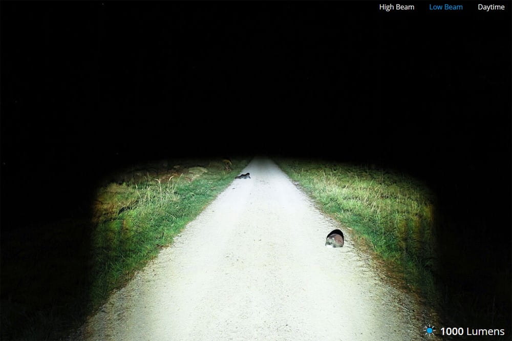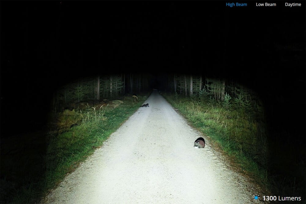 Kiedy nadchodzi zmierzch, SL automatycznie przełącza się ze świateł do jazdy dziennej na światła mijania i wskazuje drogę w ruchu ulicznym, bezpiecznie i bez oślepiania. Z dala od miasta naciskasz przycisk pilota Bluetooth, aby wyzwolić pełne światło drogowe o mocy 1300 lumenów, wystarczające do szybkich przejażdżek i trudnych tras.