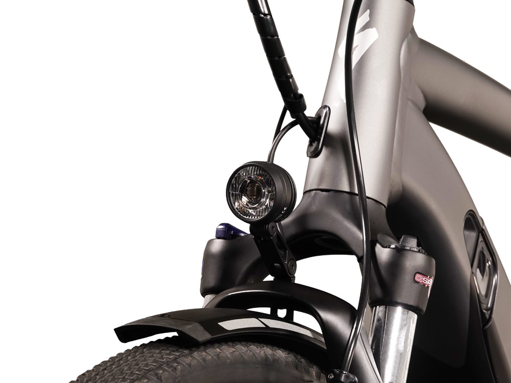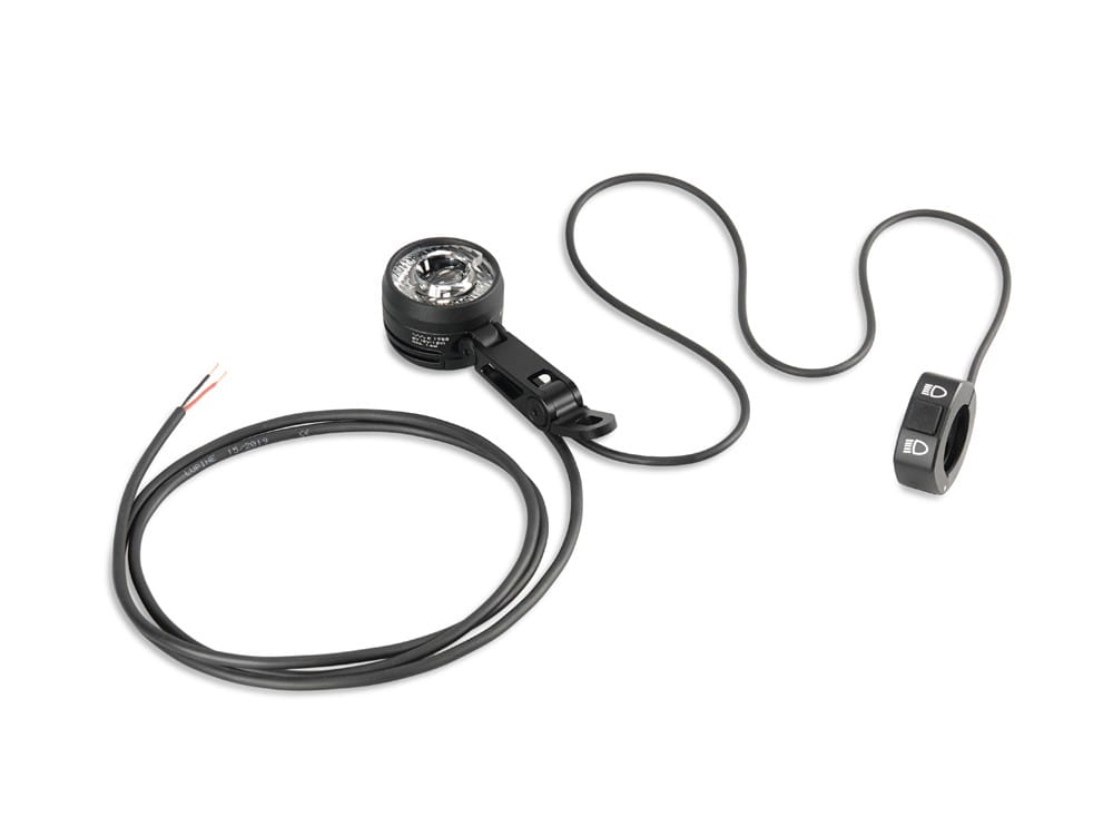 900 lumenów światła drogowego z tak małej lampki wydaje się wręcz niewiarygodne. Za pomocą przewodowego pilota zdalnego sterowania, opracowanego specjalnie dla rowerów elektrycznych, możesz w ułamku sekundy przełączać między światłami mijania i drogowymi.