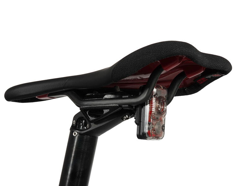 Opcjonalnie możesz przymocować czerwone światło za pomocą naszego uchwytu na prętach, bezpośrednio pod siodełkiem.