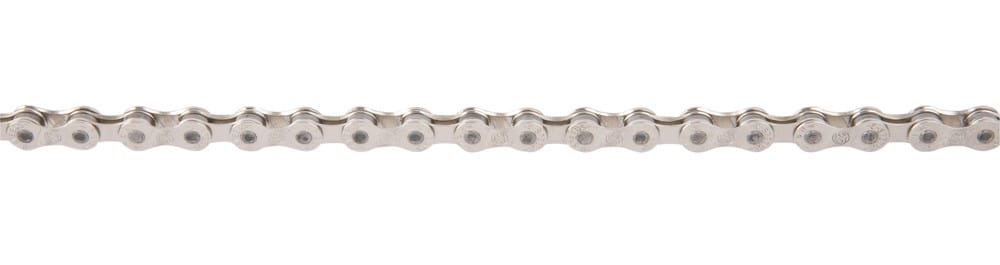 Wytrzymały łańcuch 11-rzędowy. Wszystkie ogniwa niklowane. Bolce utwardzane powierzchniowo w technologii DHA. Jest to wyjątkowo odporna na ścieranie i rdzę powłoka z węglików chromu o twardości sięgającej 1500 HV. Łączony spinką.