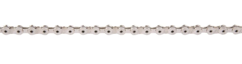Bardzo lekki i wytrzymały łańcuch 9-rzędowy. Wszystkie ogniwa niklowane. Drążone bolce utwardzane powierzchniowo w technologii DHA. Jest to wyjątkowo odporna na ścieranie i rdzę powłoka z węglików chromu o twardości sięgającej 1500 HV. Łączony spinką.