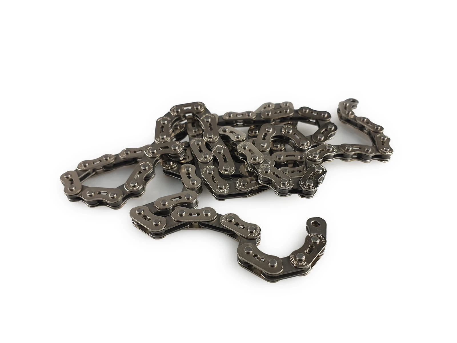 Bardzo mocny i lekki łańcuch 1-rzędowy. Do zębatki 1/8" lub 3/32". Ażurowe ogniwa zewnętrzne pokryte klasycznym, czarnym lakierem lub bardziej odważne, kolorowe propozycje, w tym nowy kolor petrol!