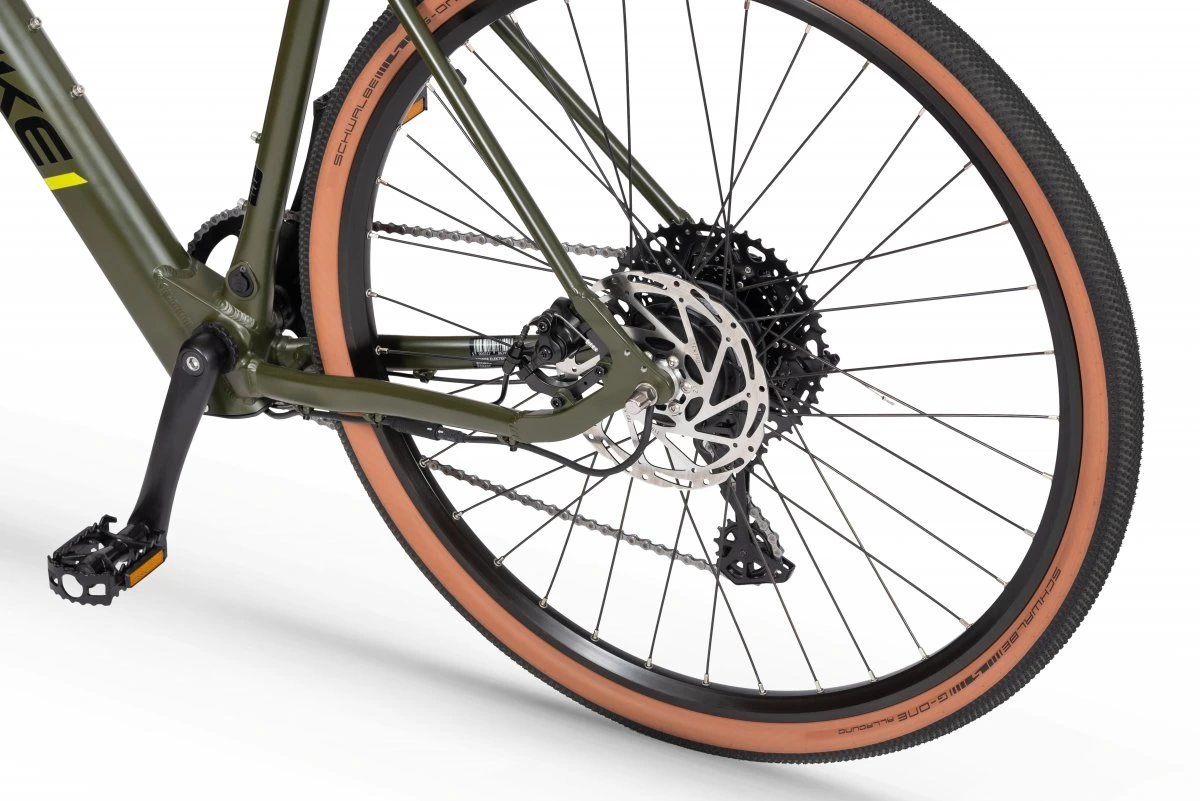 Tylna piasta Bafang CR X10T o napięciu 36 V, momencie obrotowym 30 Nm i mocy nominalnej 250 W wspomaga jazdę do 25 km/h zgodnie z normą UE EN 15194. Kontroler Bafang CR X10T współpracuje z systemem Smart BMS, a dwie baterie LG Li-ion o pojemności 349,2 Wh + 252 Wh pozwalają przejechać do 120 km na jednym ładowaniu. Czas ładowania wynosi około 5 godzin, a żywotność baterii przekracza 700 cykli ładowania.