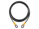 Stalowa, pleciona linka odporna na przecięcia i piłowanie. Osłona winylowa chroni przez zadrapaniami. Lżejsze i łatwiejsze w transporie niż łańcuchy rowerowe. Rozmiar bardzo długi, 460cm x 10mm, wyjątkowo elastyczna, z trwale zakrzywionymi pętlami. Zawiera pasek na rzep.
