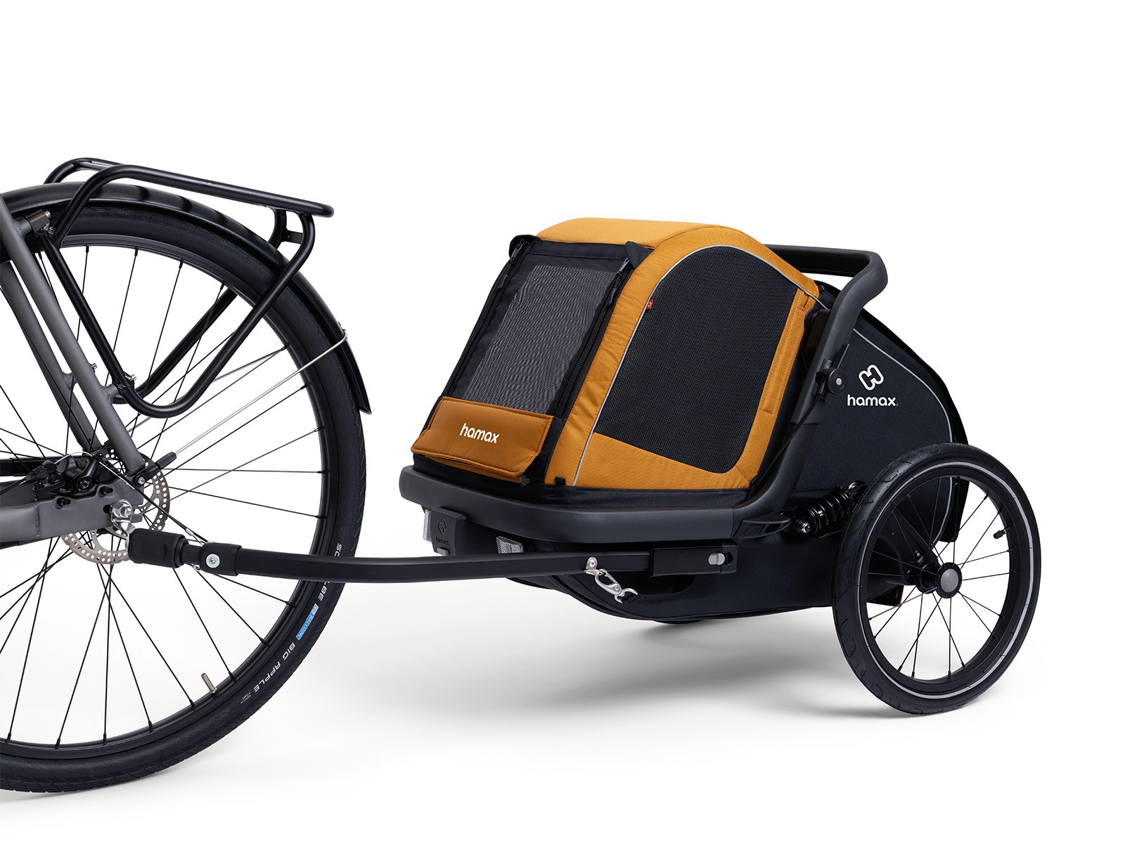 Dzięki dodatkowemu zestawowi spacerowemu można w łatwy sposób przerobić przyczepkę na wózek. Zestaw sprzedawany jest oddzielnie pod kodem 490101_HAM