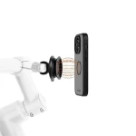 Dzięki genialnie prostemu połączeniu siły magnetycznej i podciśnienia smartfon można obsługiwać jedną ręką i obracać o 360°, a mechanizm zapadkowy zapobiega obracaniu się.