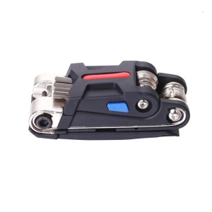 Narzędziownik16 funkcji- Klucze imbusowe: 2 - 2,5 - 3 - 4 - 5 - 6 - 8mm- Klucze nasadowe: 8 - 10 - 15 mm- Wkrętaki: płaski i krzyżowy- Kluczyk do szprych- 2 łyżki do opon- Skuwacz/rozkuwacz łańcucha