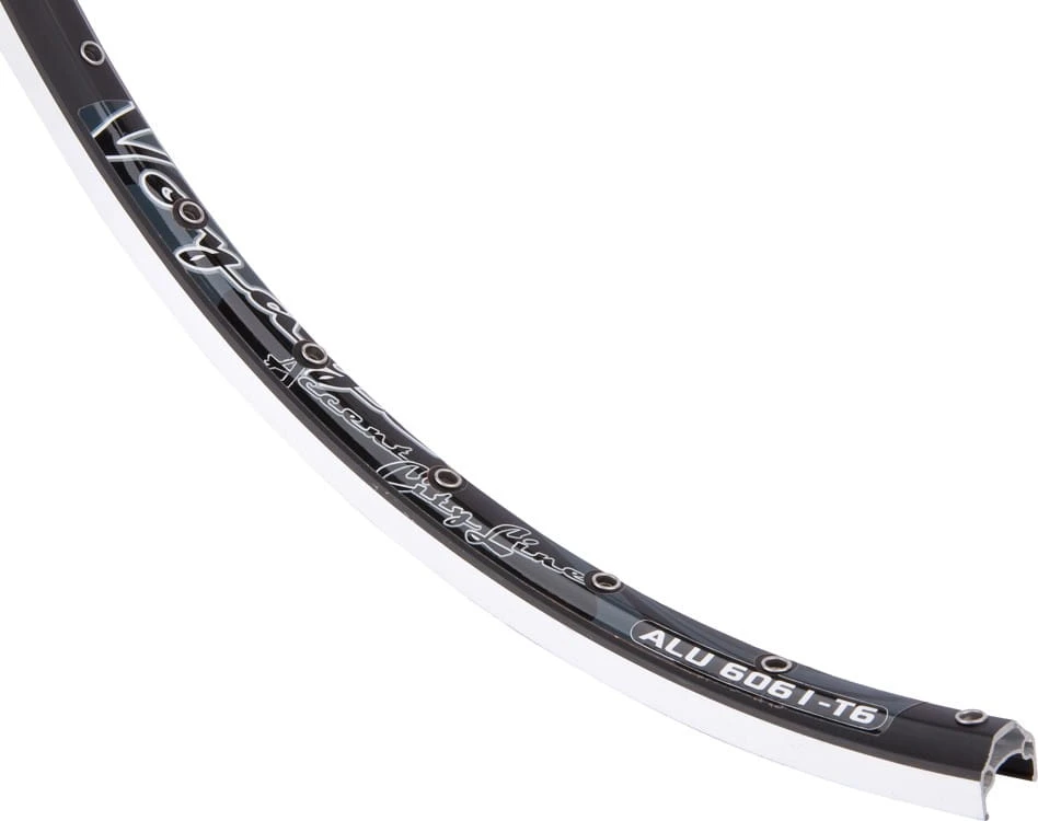 Lekka obręcz do kół 26" lub 700C. Wykonana ze stopu aluminium 6061-T6. Dwuścienna i kapslowana. 3 komory. Ścianki boczne szlifowane CNC. System SAFETY LINE. Posiada otwór na wentyl FV.