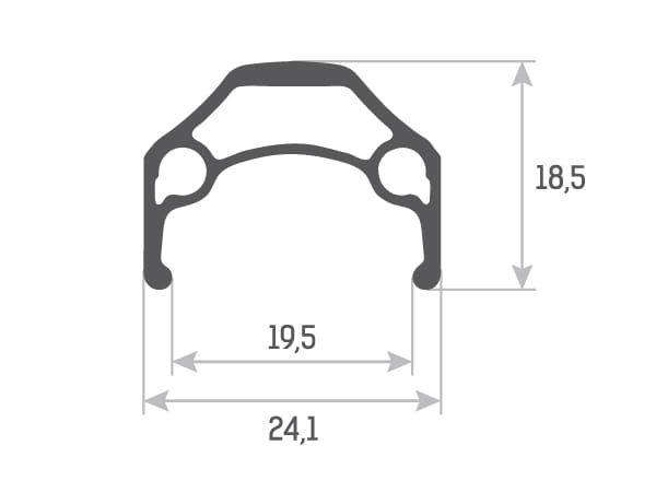 Lekka obręcz do kół 26" lub 700C. Wykonana ze stopu aluminium 6061-T6. Dwuścienna i kapslowana. 3 komory. Ścianki boczne szlifowane CNC. System SAFETY LINE. Posiada otwór na wentyl FV.
