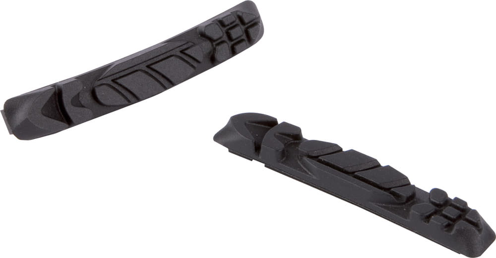 Okładziny do klocków hamulcowych typu V-Brake. 3-funkcyjny, dzielony bieżnik zapewniający bardzo dużą siłę hamowania, usuwający z obręczy błoto i zanieczyszczenia oraz zapobiegający piskom.