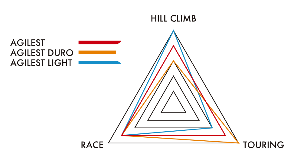 - ZSG AGILE Compound – zmniejszone opory toczenia o 12% oraz wagę o 20 g w porównaniu z poprzednimi oponami Race Evo