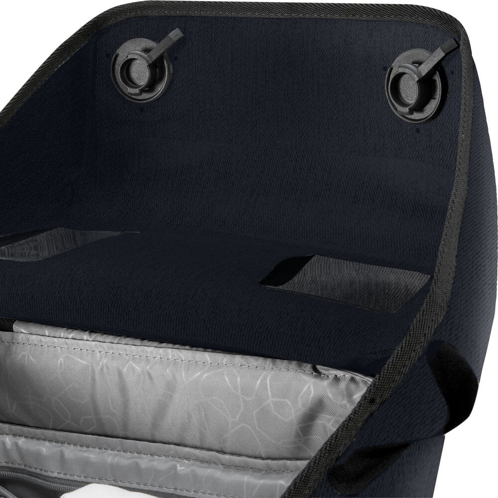 Ten niesamowicie komfortowy plecak wyposażony jest w wygodne szelki z odpinanym pasem na klatkę piersiową, zaś o komfort pleców dbają zintegrowane poduszeczki z TPU zapewniające odpowiednią cyrkulację powietrza i odprowadzanie wilgoci. System nośny został zaprojektowany przez ORTLIEB i całkowicie wyprodukowany w Niemczech.