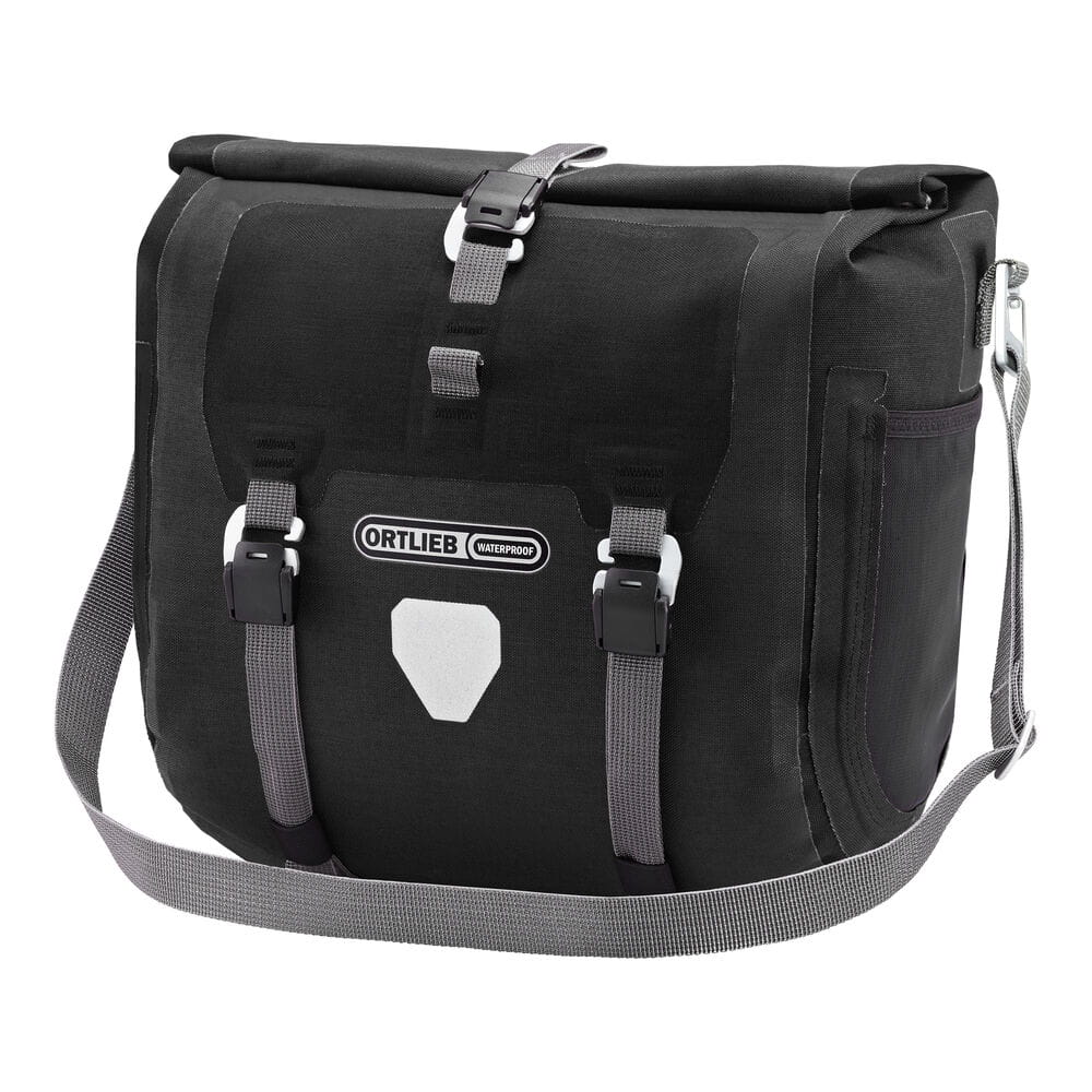 Wodoodporna torba na kierownicę z paskiem na ramię. Szybki dostęp do wnętrza torby poprzez zwijane zamknięcie zabezpieczane paskiem z haczykiem. Idealna do montażu na rowerach szosowych i gravelowych. Wyposażona w dwie siateczkowe elastyczne kieszonki boczne oraz zewnętrzny i wewnętrzny pasek kompresyjny. Pasek na ramię jest odłączany. Płytka montażowa KlickFix jest płaska. W zestawie wyjmowana kieszonka wewnętrzna na drobiazgi, kompatybilna również z torbą Handlebar-Pack QR.