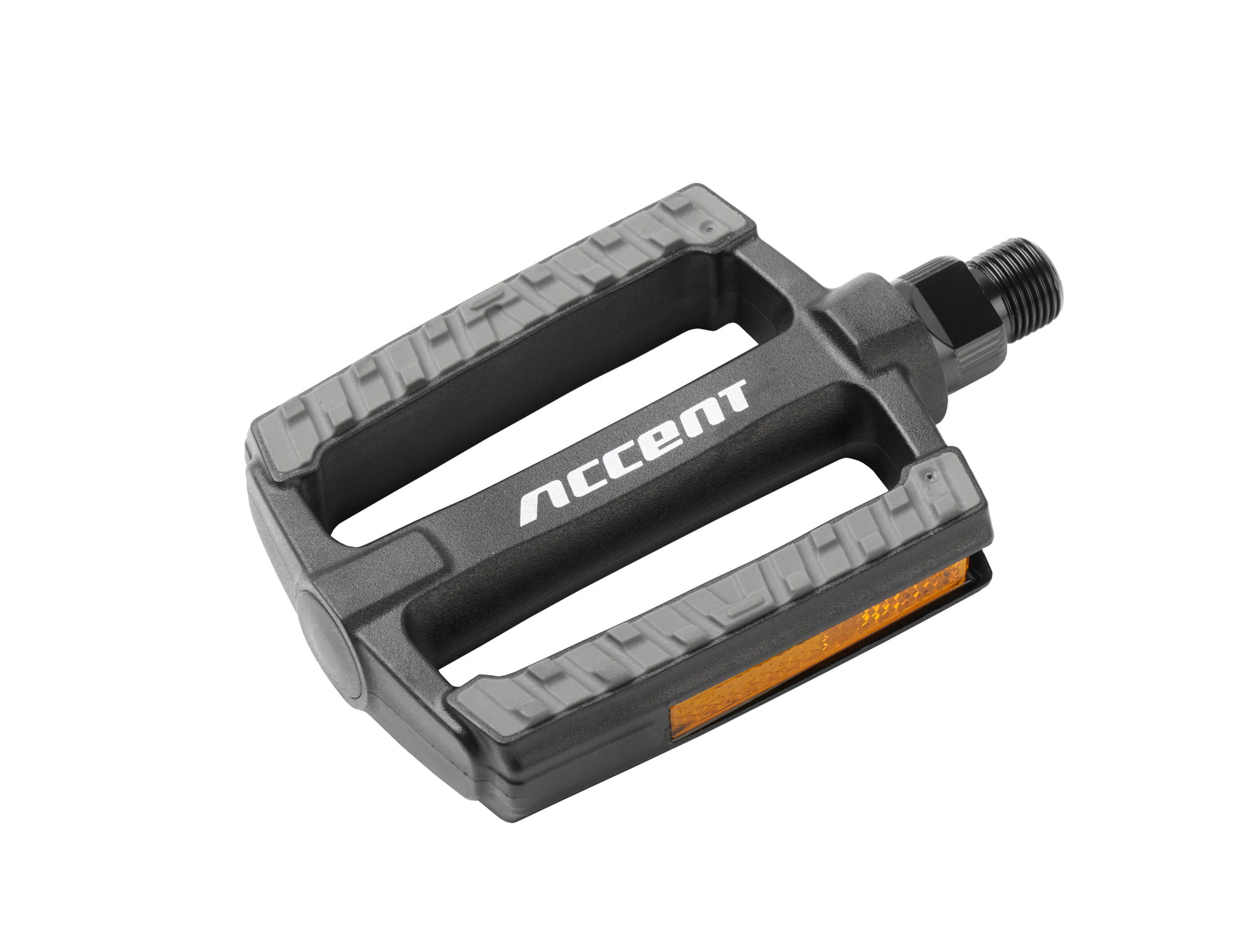 Pedały o nowoczesnej stylistyce przeznaczone do rowerów miejskich i trekingowych. Korpus wykonany z wytrzymałego tworzywa sztucznego. Osłona pokryta antypoślizgowym bieżnikiem. Oś zbudowana ze stali Cr-Mo. Pedały wyposażone w łożyska kulkowe.