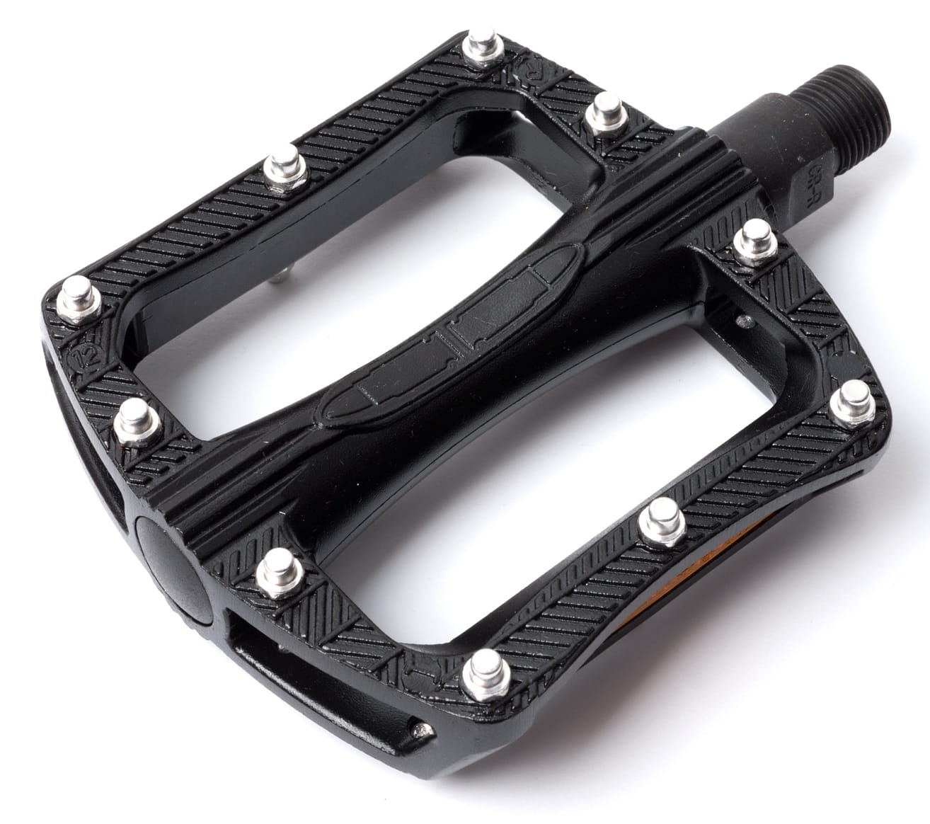 Masywne pedały platformowe przeznaczone do jazdy BMX lub freestyle MTB. Korpus wykonany ze stopu aluminium 6061-T6. Bardzo mocna oś wykonana ze stali Cr-Mo. Łożyska kulkowe. Wymienne piny antypoślizgowe Cr-Mo. Wymiary: 112 x 100 x 31 mm. Waga: 475 g. Kolor: czarne.