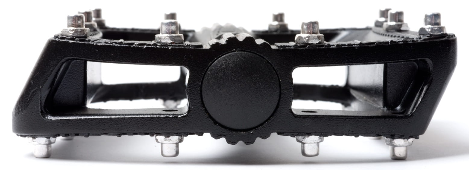 Masywne pedały platformowe przeznaczone do jazdy BMX lub freestyle MTB. Korpus wykonany ze stopu aluminium 6061-T6. Bardzo mocna oś wykonana ze stali Cr-Mo. Łożyska kulkowe. Wymienne piny antypoślizgowe Cr-Mo. Wymiary: 112 x 100 x 31 mm. Waga: 475 g. Kolor: czarne.