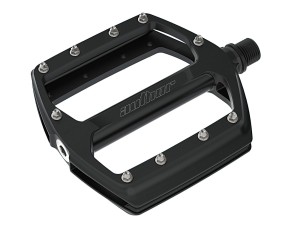 Masywne pedały platformowe przeznaczone do jazdy BMX lub freestyle MTB o bardzo niskim profilu. Korpus wykonany ze stopu aluminium 6061-T6. Bardzo mocna oś wykonana ze stali Cr-Mo. Podwójnie uszczelnione łożyska kulkowe. Wymienne piny antypoślizgowe Cr-Mo. Wymiary: 114 x 104 x 18 mm. Waga: 440 g. Kolor: czarne.