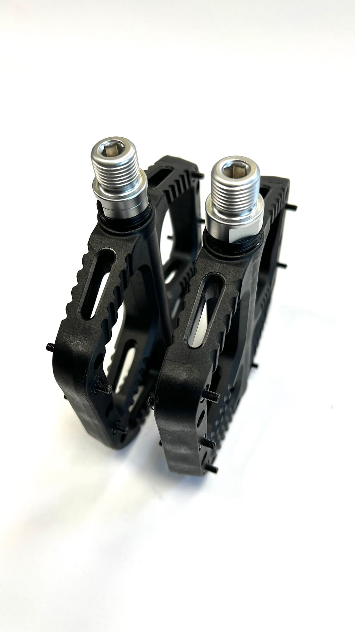 Platforma pedałów wykonana z wysokiej jakości nylonu, co zapewnia lekkość i odporność na warunki atmosferyczne oraz trudne tereny.