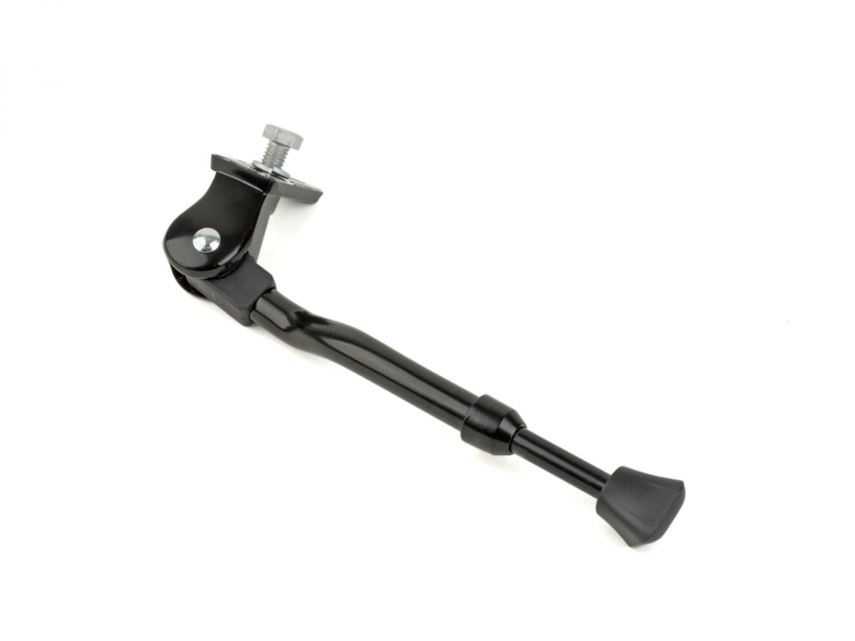 Podpórka rowerowa o regulowanej wysokości do rowerów o kołach 16"-20". Wykonana z kutego stopu aluminium 6061-T6. Mocowana centralnie za mufą suportu. Waga: 162 g. Kolor: czarna.