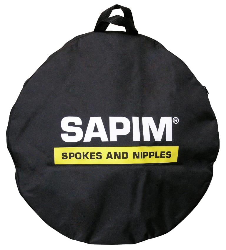 Pokrowiec na koło Sapim wykonany z odpornego na rozdarcia materiału. Umożliwia łatwy transport lub przechowywanie koła po zdemontowaniu z roweru. Wyposażony w uchwyt dla łatwego noszenia. Kolor: czarny. Rozmiary: 26" lub 29".