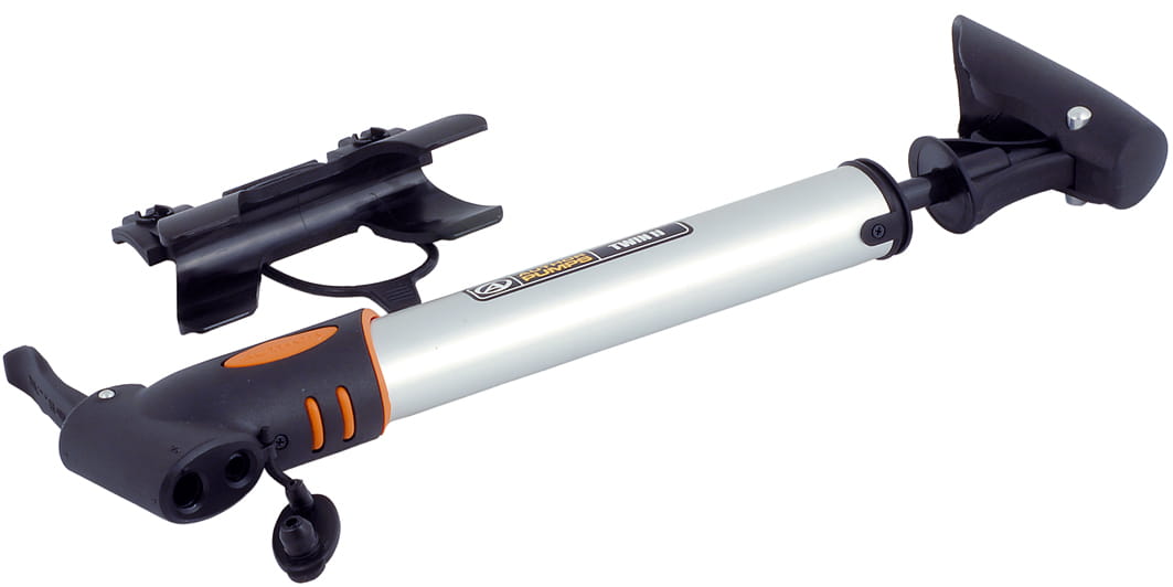 Pompka rowerowa z podwójną końcówką przystosowaną do wszystkich typów wentyli. Korpus wykonany ze stopu aluminium 6061-T6. Ergonomiczna, poprzecznie ustawiana rękojeść. W komplecie uchwyt mocujący. Rozmiar: Ø 32 x 275 mm. Waga: 148 g (z uchwytem). Maksymalne ciśnienie: 80 PSI (5,5 bar).