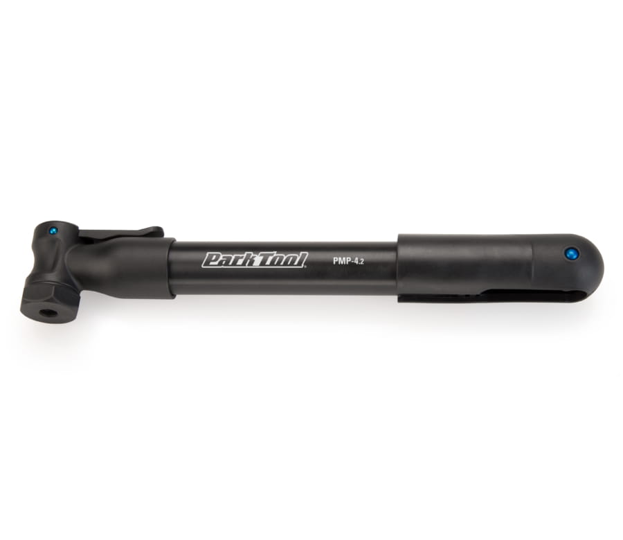 Mini pompka z aluminiowym cylindrem, ergonomiczną rękojeścią ustawianą poprzecznie i końcówką z zaciskiem do wszystkich typów wentyli. Maksymalne ciśnienie 6 atmosfer, uchwyt do mocowania w zestawie. Długość 265mm, waga 130 g.