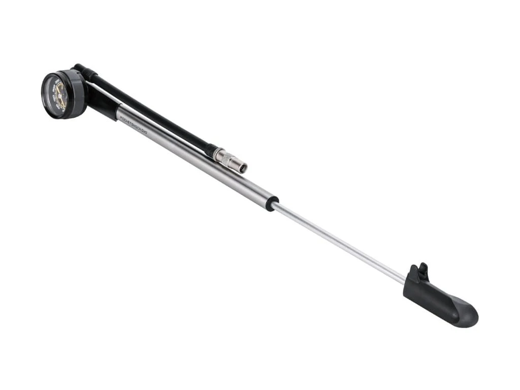 Większy brat PocketShock DXG! Precyzyjna pompka do amortyzatorow z wyciąganą głowką do szybkiego napełniania i łatwym do odczytu czujnikiem w zakresie 360 psi / 24,8 barów. Przycisk uwalniania powietrza i złącze Pressure-Rite ułatwiają ustawianie odpowiedniego ciśnienia i eliminują straty powietrza podczas odłączania, podczas gdy elastyczny wąż odciąża trzpień zaworu podczas pompowania.