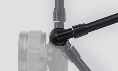 Pompka ma kompaktowe wymiary, jest lekka i prosta w obsłudze. Dysponuje elastycznym, gumowym przewodem doprowadzającym powietrze do zaworu amortyzatora - to rozwiązania pozwala uniknąć naprężeń na zaworze podczas pompowania. Ten model ma też przycisk do wygodnego spuszczania powietrza. Złącze Pressure-Rite daje możliwość odłączenia dyszy pompującej bez niekontrolowanego spadku ciśnienia w zawieszeniu jednośladu.