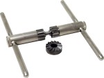 Przyrząd do gwintowania i planowania mufy suportu z angielskim gwintem BSA, składający się z dwuczęściowej oprawy, gwintownika #691 (prawy gwint), gwintownika #692 (lewy gwint) i frezu planującego #690.