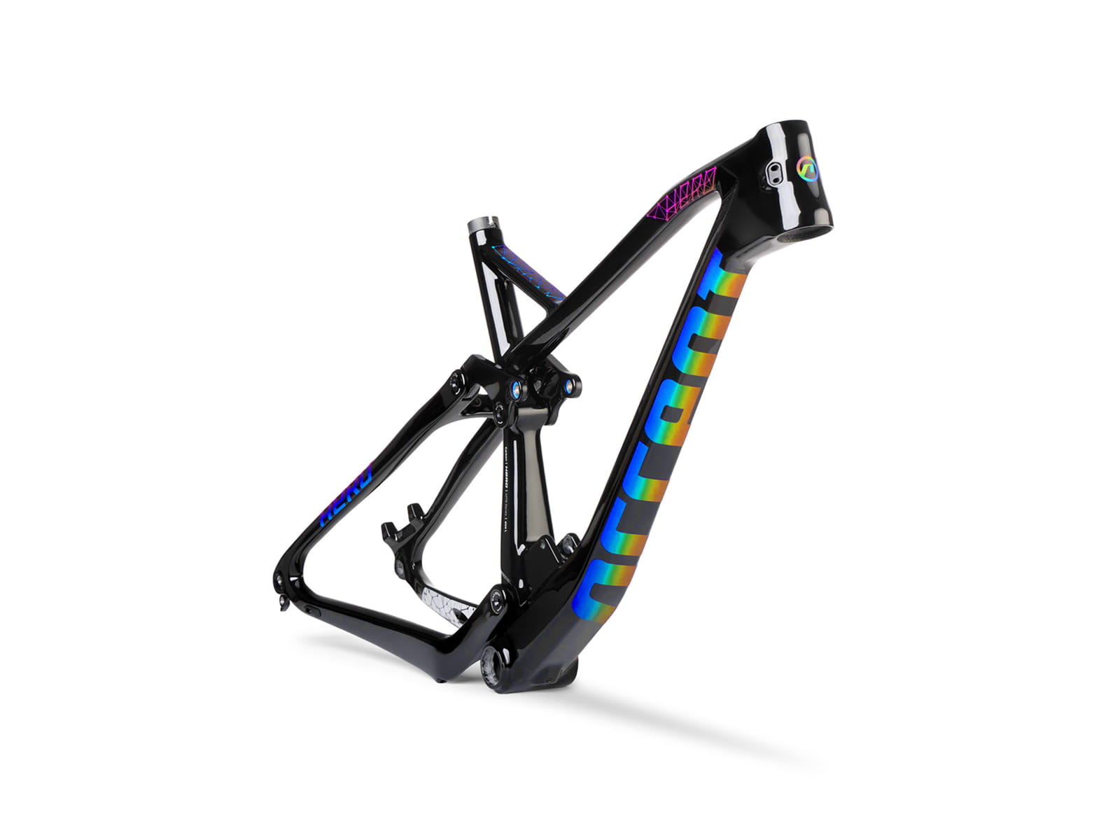 Gotowy na podjęcie wyzwania? W pełni zawieszona karbonowa rama Hero pokona nawet najbardziej wymagające trasy maratonów MTB i wyścigów XC. Jej agresywna geometria została zaprojektowana tak, aby nie tylko sprostać niekorzystnym warunkom, ale także zrobić to szybko. Rama przystosowana jest do widelców o skoku 100mm i damperów o wymiarach 165x40mm, mocowanych w systemie Trunnion. Istnieje także opcja zastosowania standardowego mocowania, dzięki czemu rama kompatybilna jest z szerokim wachlażem tylnych amortyzatorów. Sztywna oś o standardzie boost (12x148mm) sprawia, że rama jest jeszcze sztywniejsza, a zbudowana na niej maszyna pewnie prowadzi się w terenie. Możliwość wewnętrznego poprowadzenia pancerzy nie tylko hamulca i przerzutki, ale także droppera i blokady dampera zapewnia ochronę przed nadmiernym ich zużyciem, a także schludny wygląd.